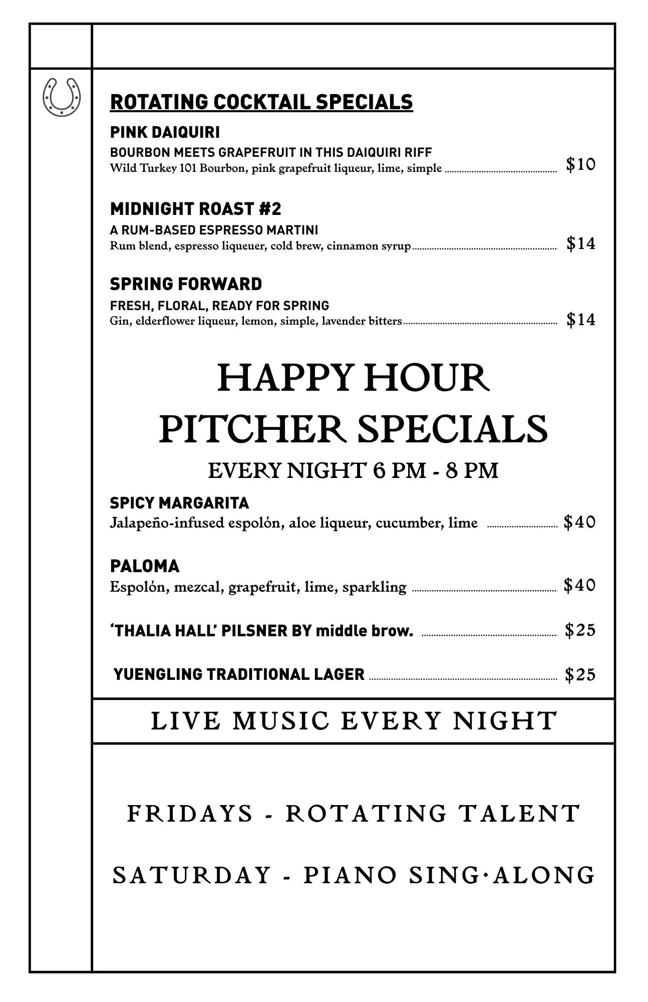 Feel free to ask your server or bartender about this new digital in-house experience.